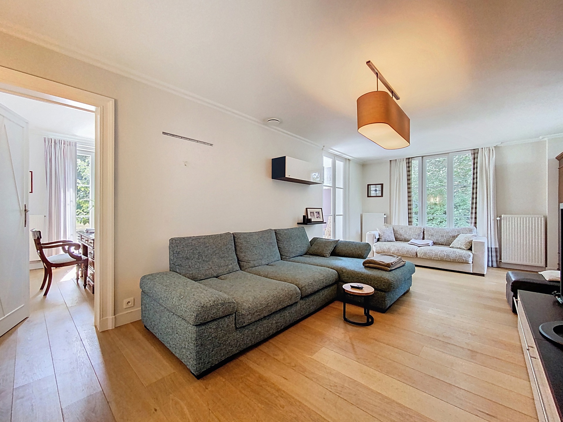 => I, 3m74/3m73 = 14 m², built-in library, double-sided fireplace