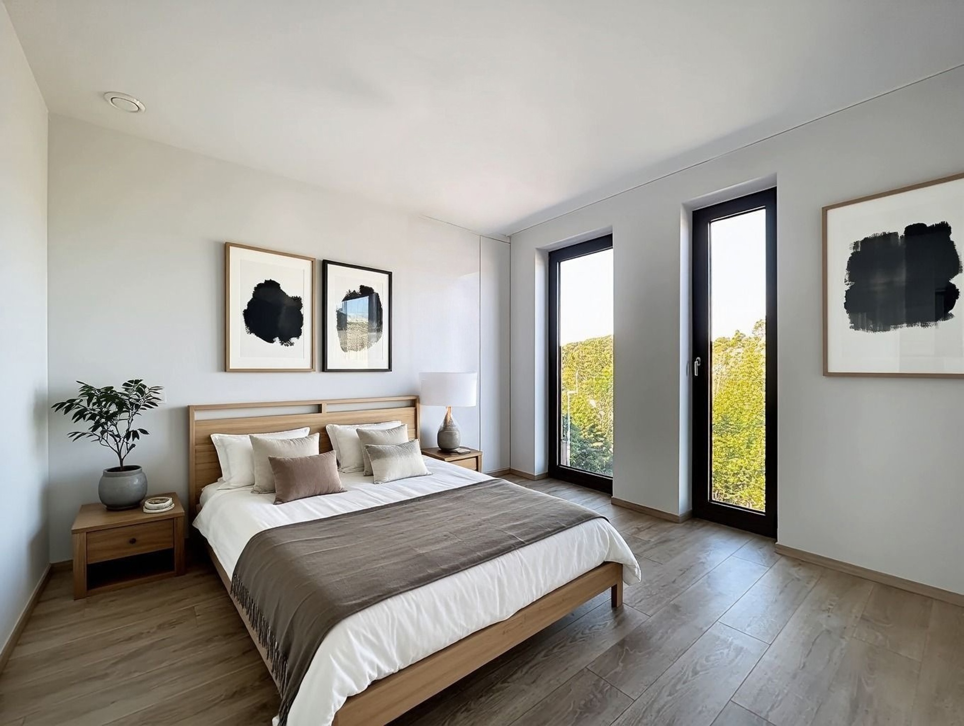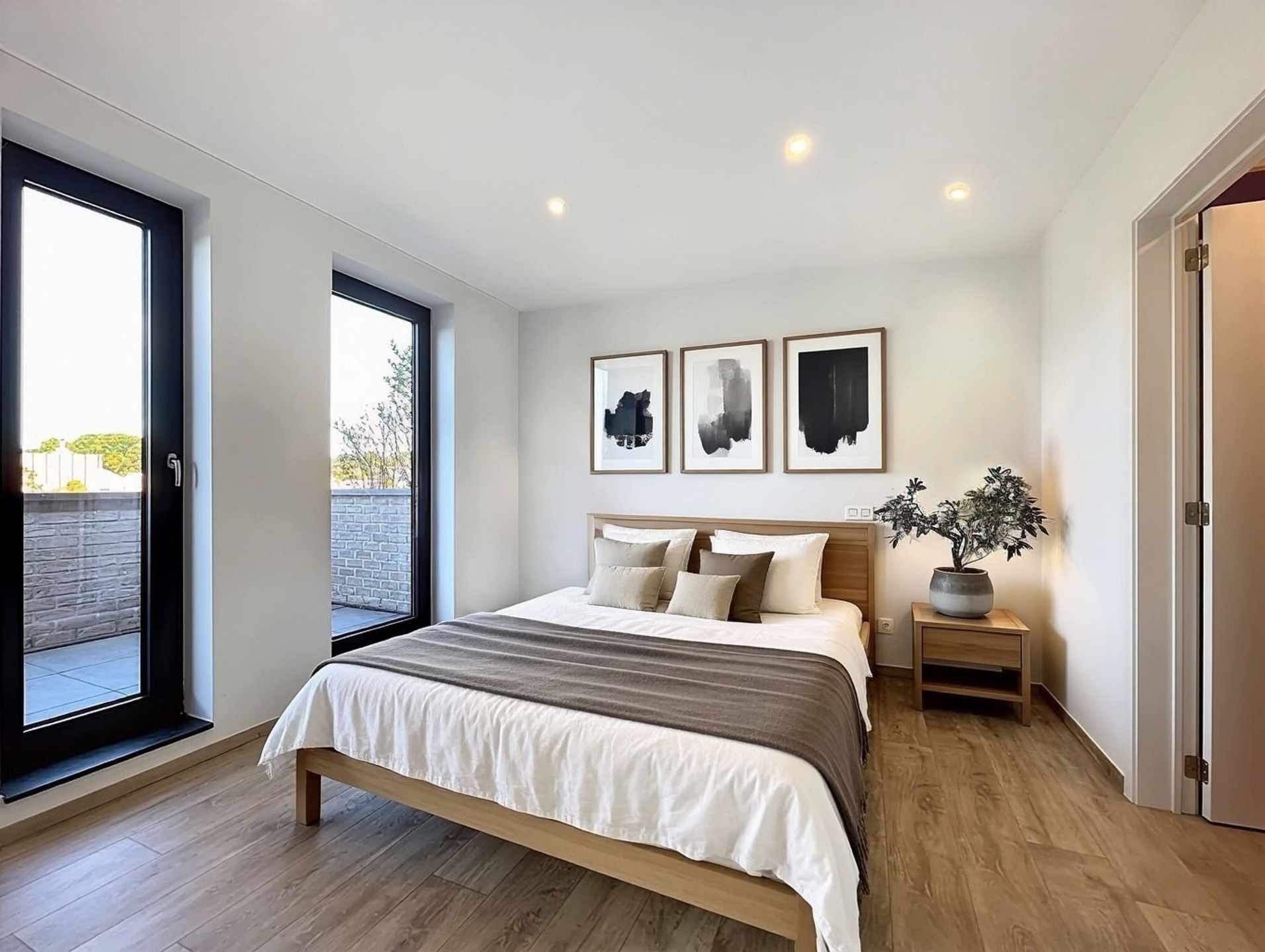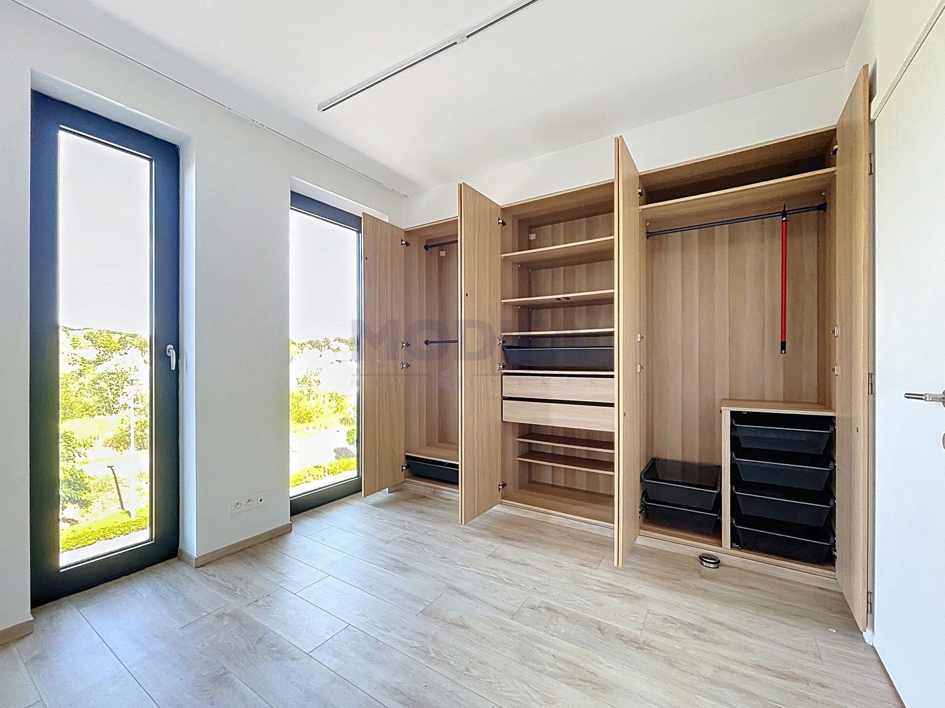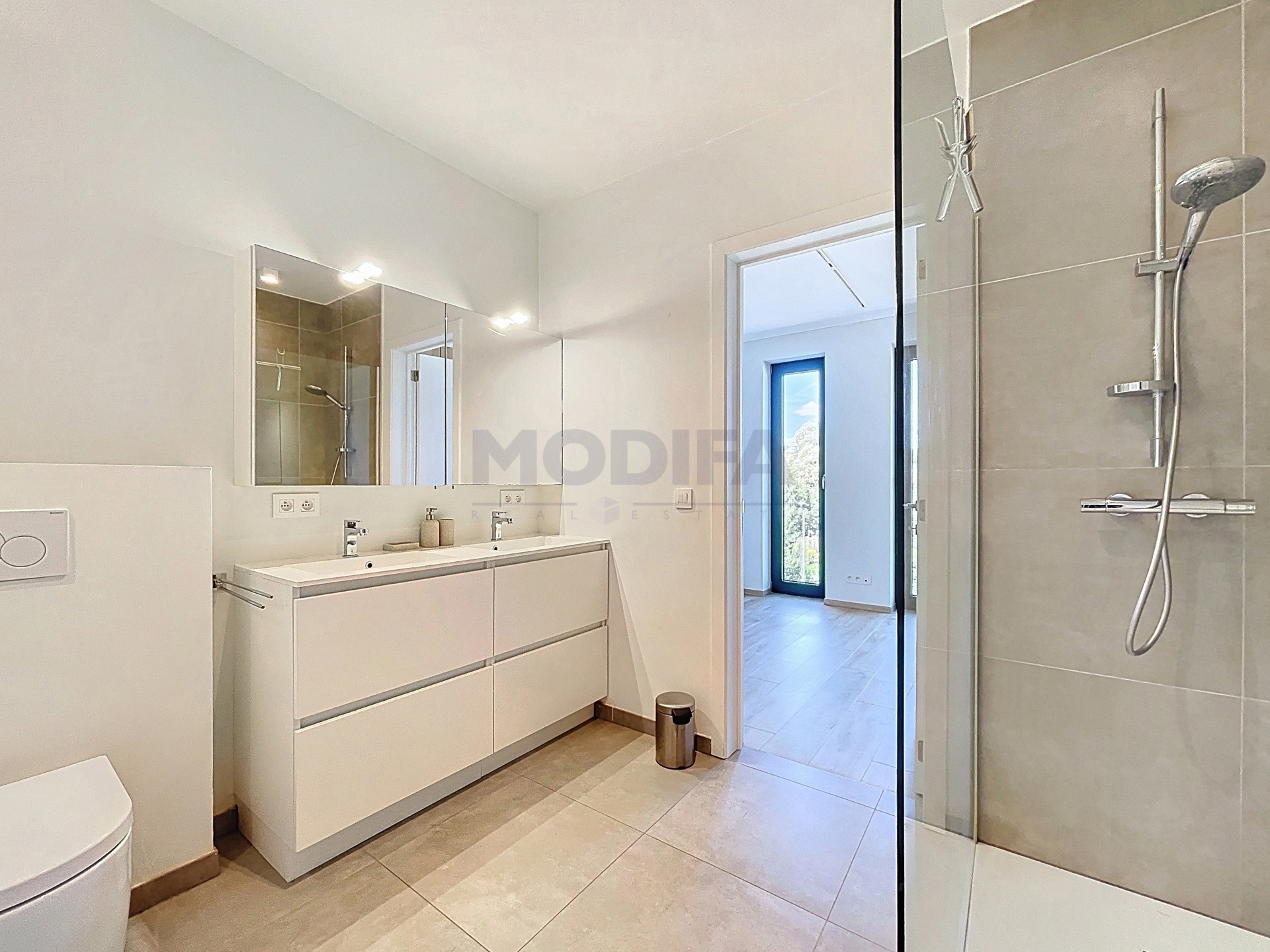 Vidéophone, ascenseur, luminaires LED, rails de rideaux, placards sur mesure, 2 emplacements de garage + vélos.