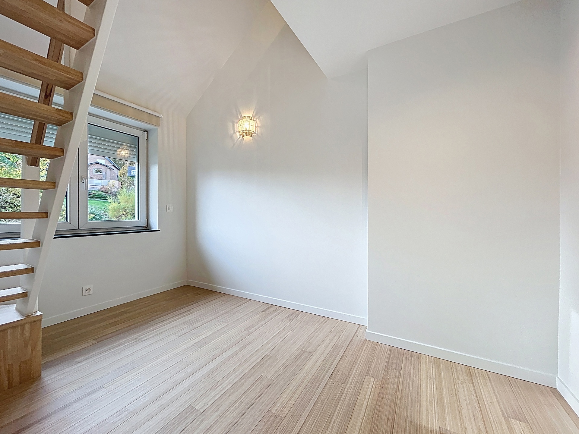 L’agence immobilière Modifa vous invite à découvrir cette adorable maison au milieu d'un beau jardin de 600m². Au grand calme et parfaitement situé, proche des transports , des écoles, des commerces Elle comprend : Au rez-de-chaussée : une entrée avec toilette et vestiaire Un beau séjour traversant très lumineux avec un bel escalier menant à l'étage, Une belle cuisine séparée entièrement équipée neuve avec porte menant vers le jardin. A l'étage : 2 belles chambres dont une avec mezzanine, une salle de bains neuve avec douche dans le bain, lavabo et toilette. Au sous sol : un bureau, une cave buanderie, un garage, une cave rangement. Beau jardin parfaitement orienté. Tout est neuf, première occupation.