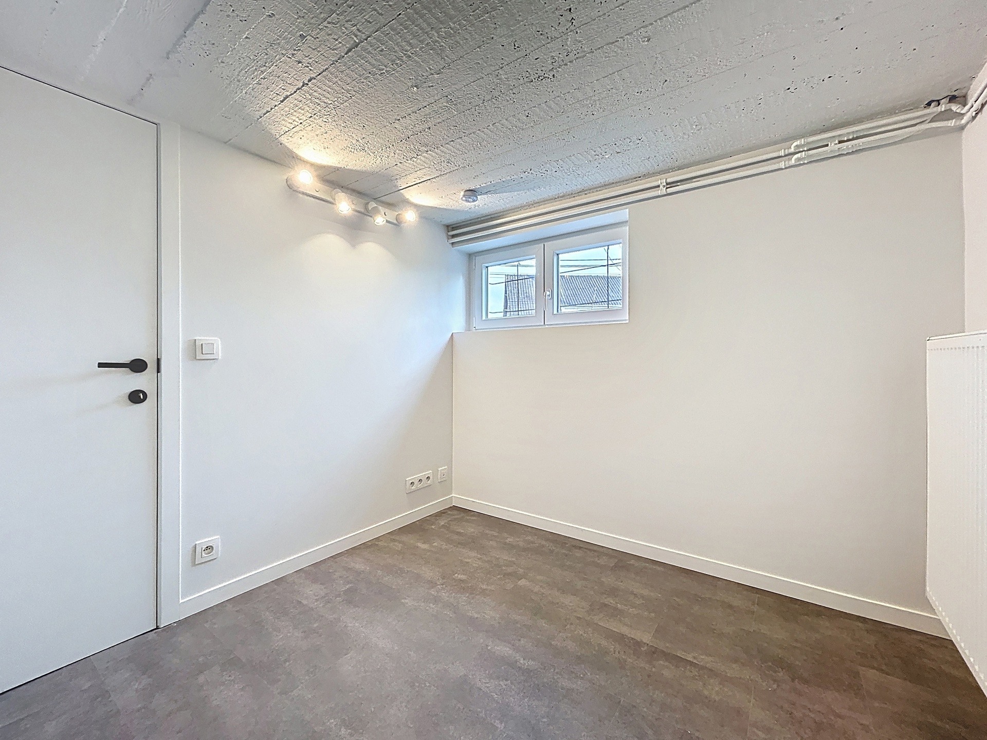 Bureau (7,95 m²) : sol en vinyle imitation carrelage gris, avec fenêtre donnant sur le jardin, apportant une belle lumière naturelle.