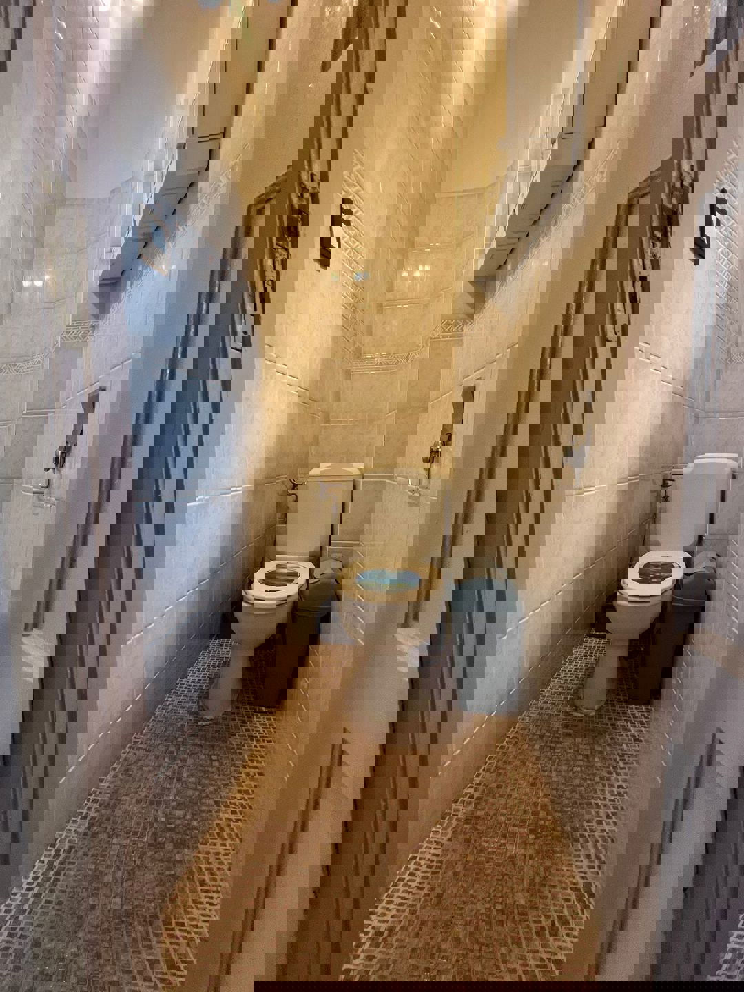 Wc séparé, chaudière individuelle au gaz, double vitrage, construction en béton.