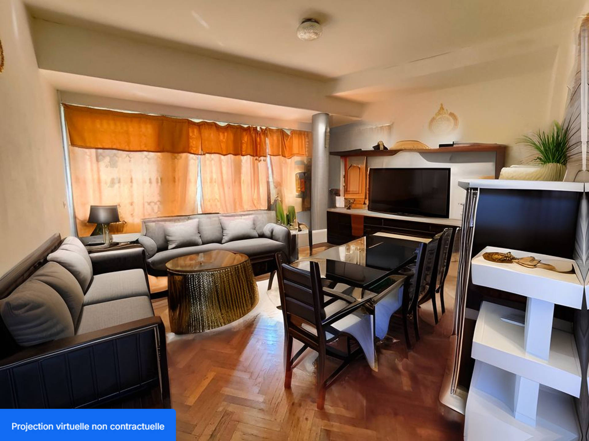 Composé d'un salon central de 20m² avec une grande cuisine adjacente. Deux Chambres de 18 et 8m².