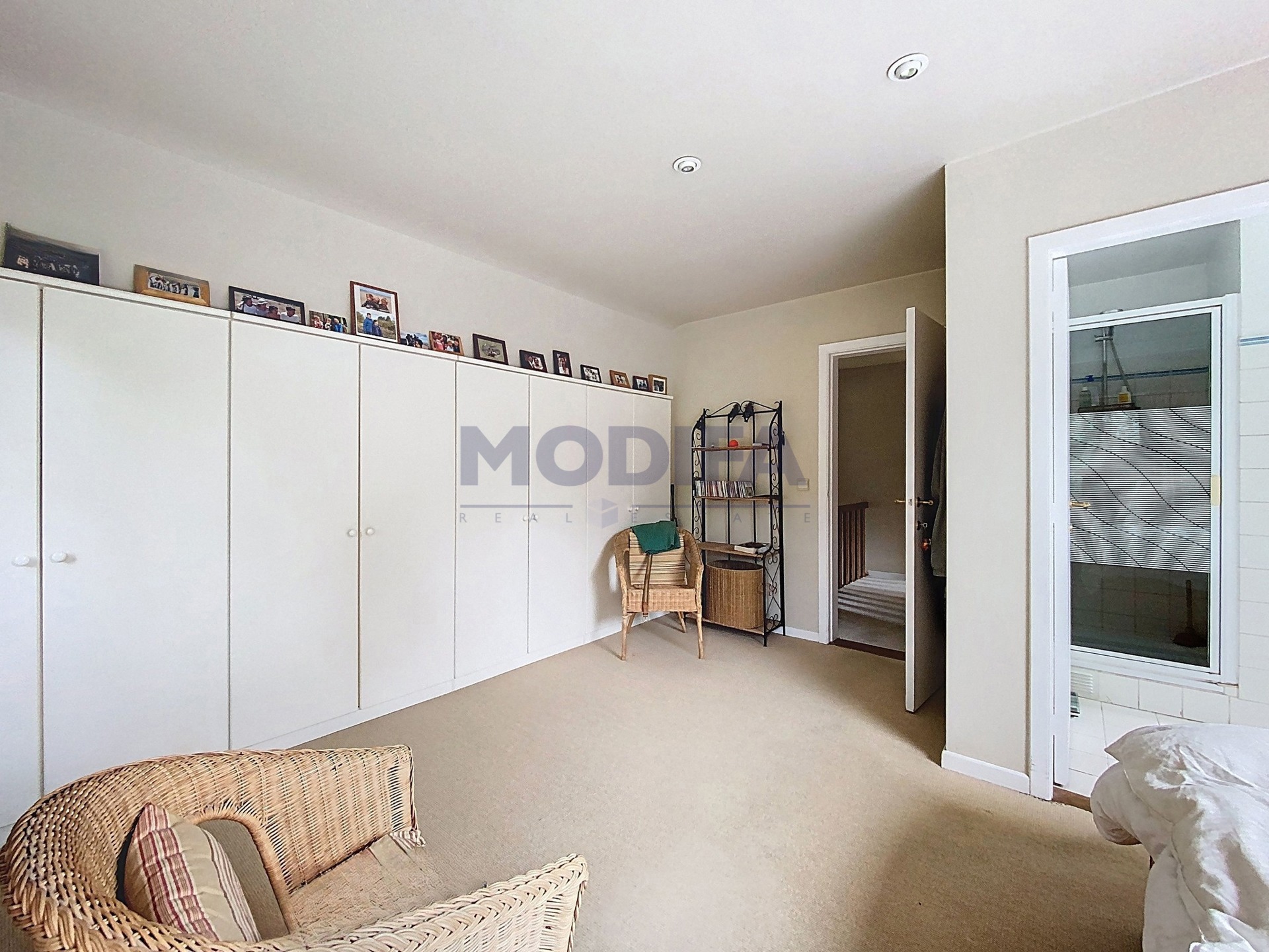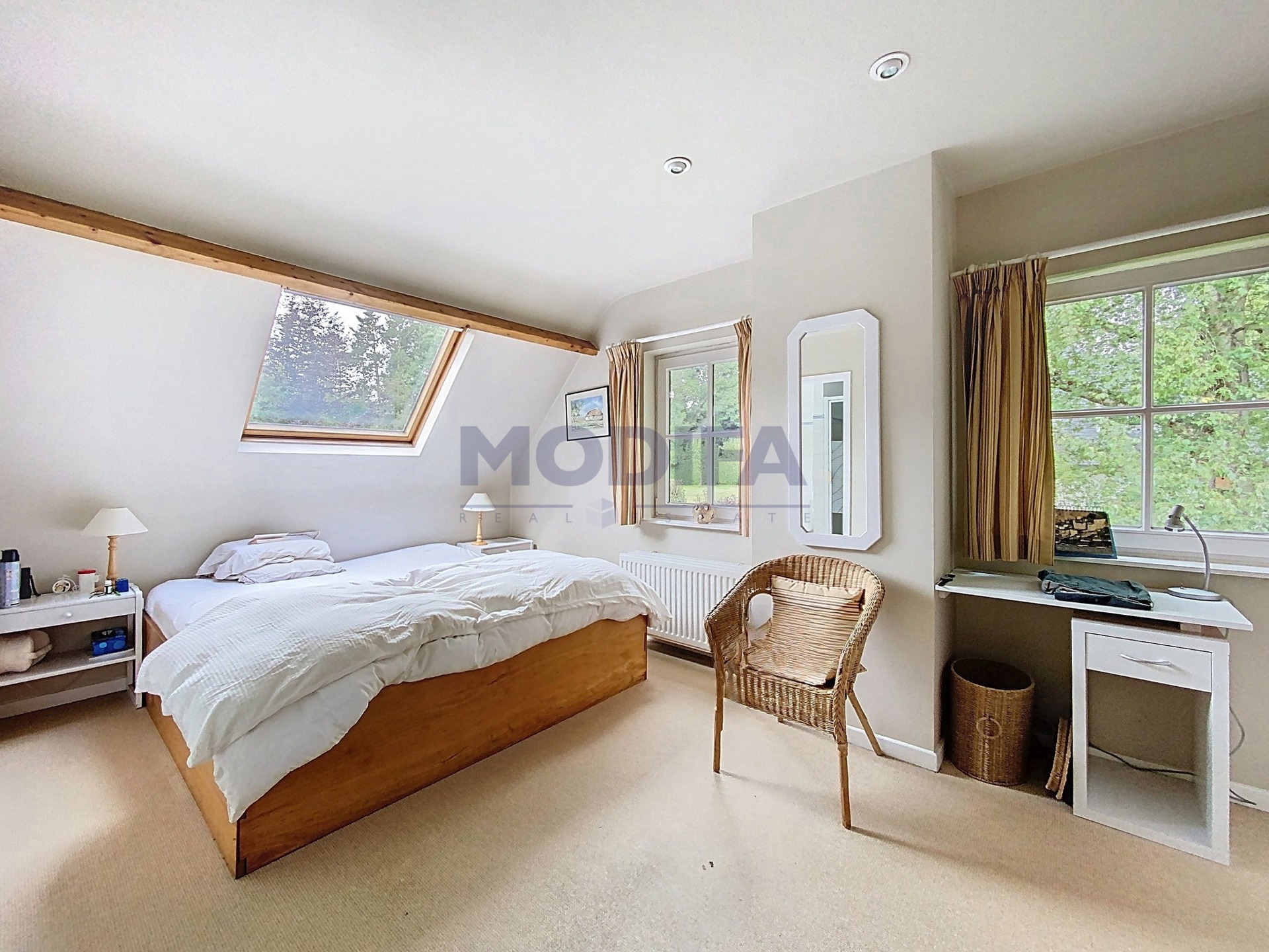 Chambre V (15m²) avec placards et accès sous pente (-> rangement) + porte vers "petite maison"