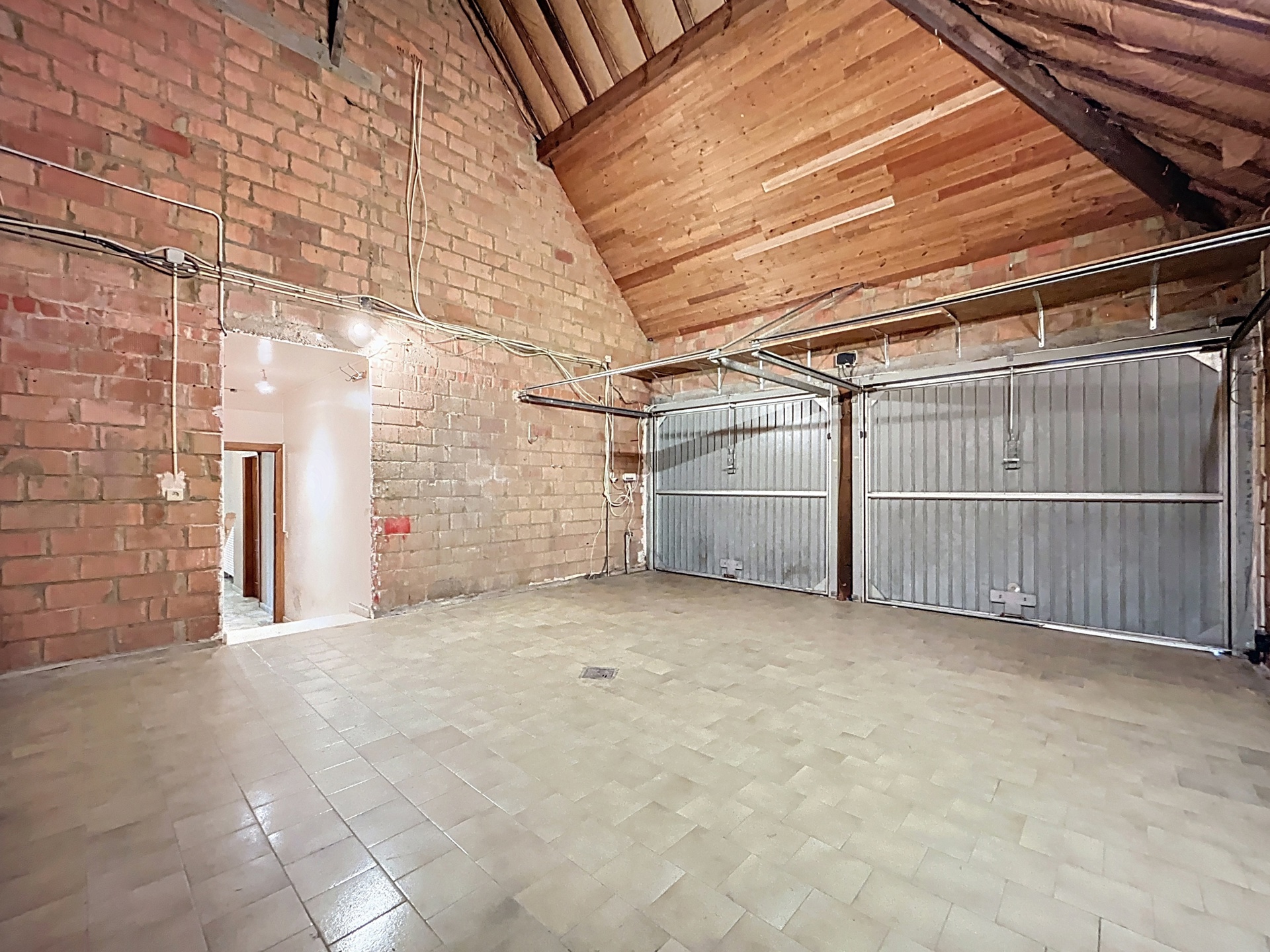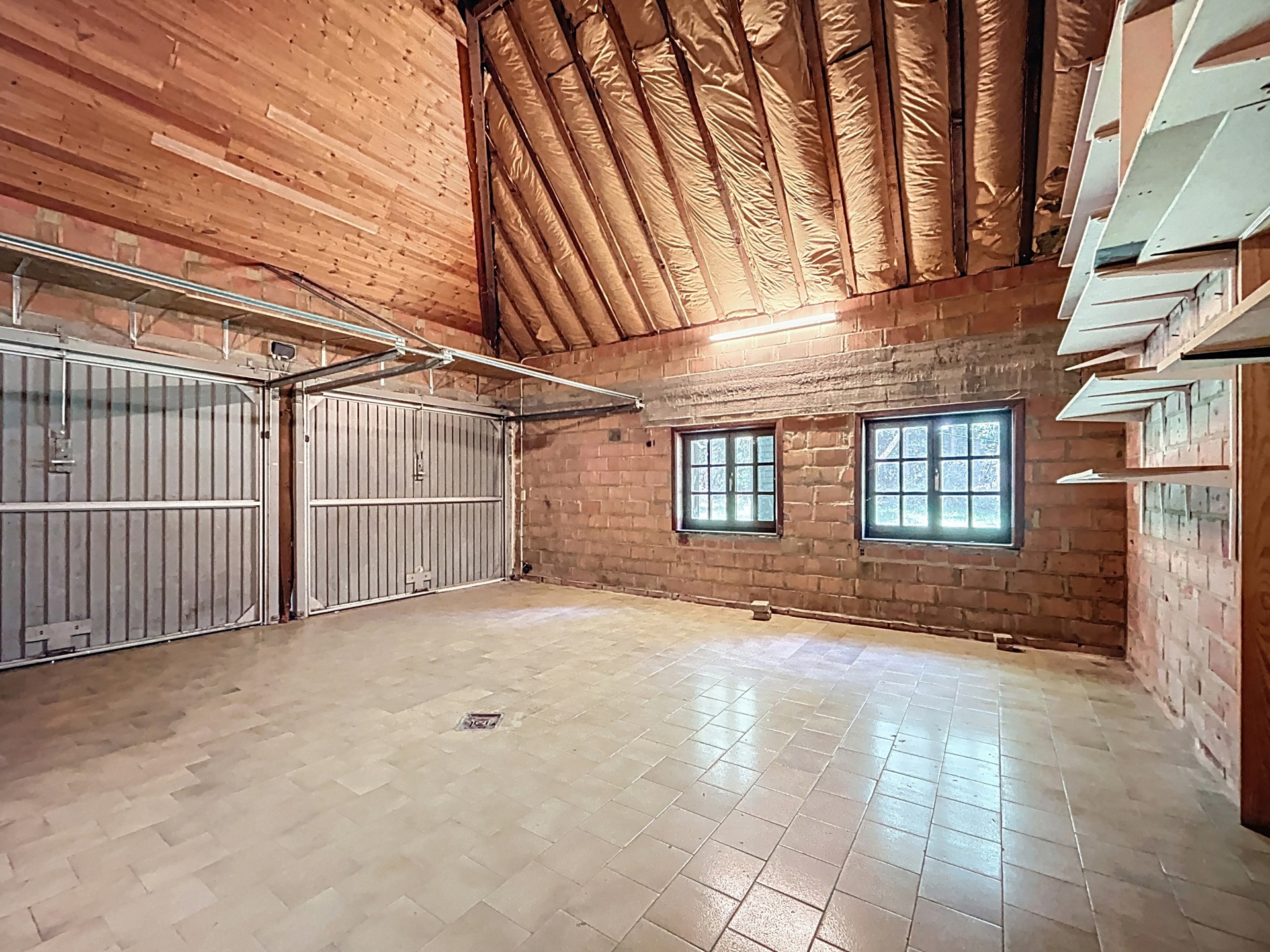 Garage van 31,7 m² voor twee wagens, met twee elektrische poorten.