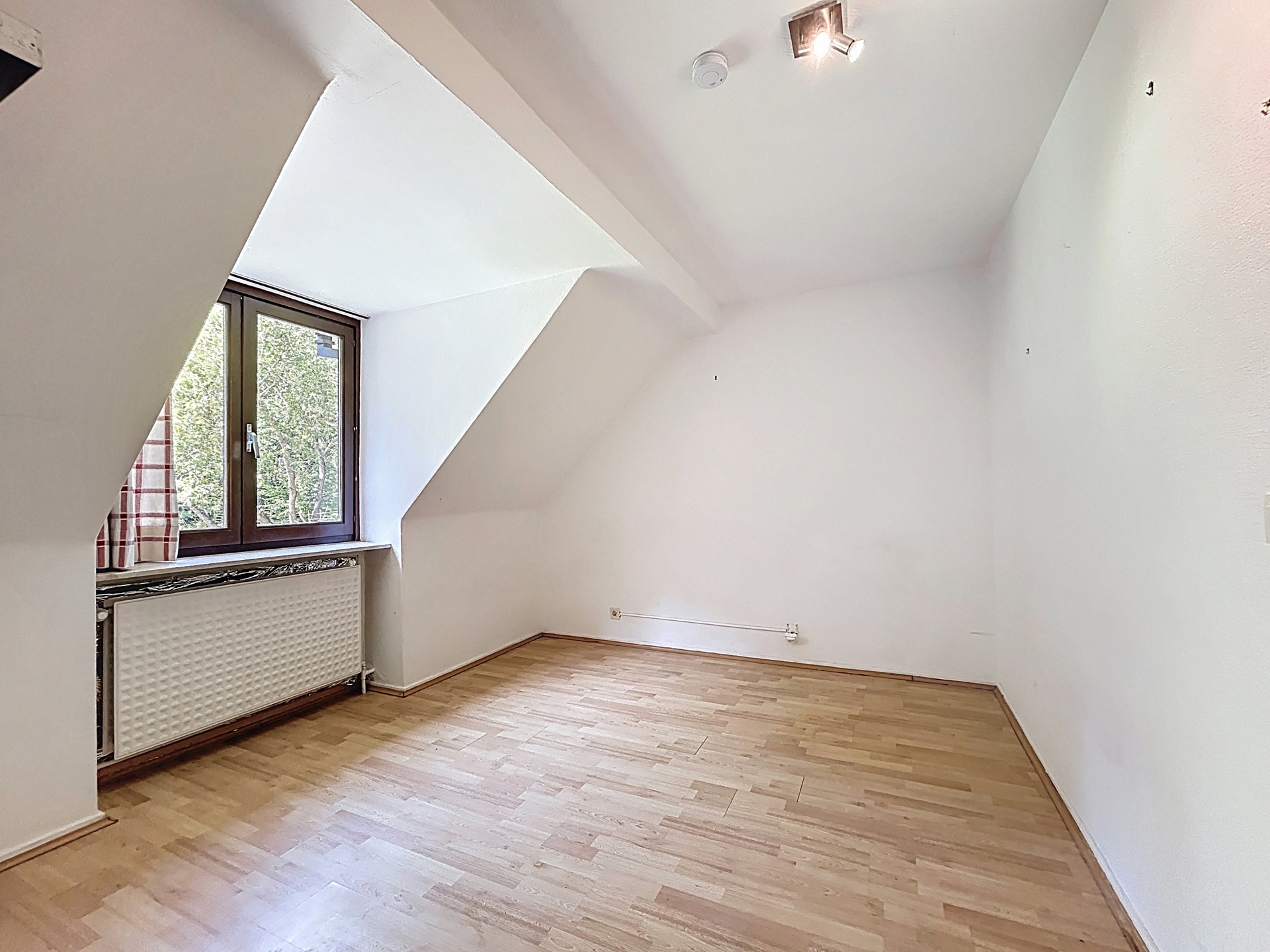 De vloer van de hele verdieping is afgewerkt met parket.