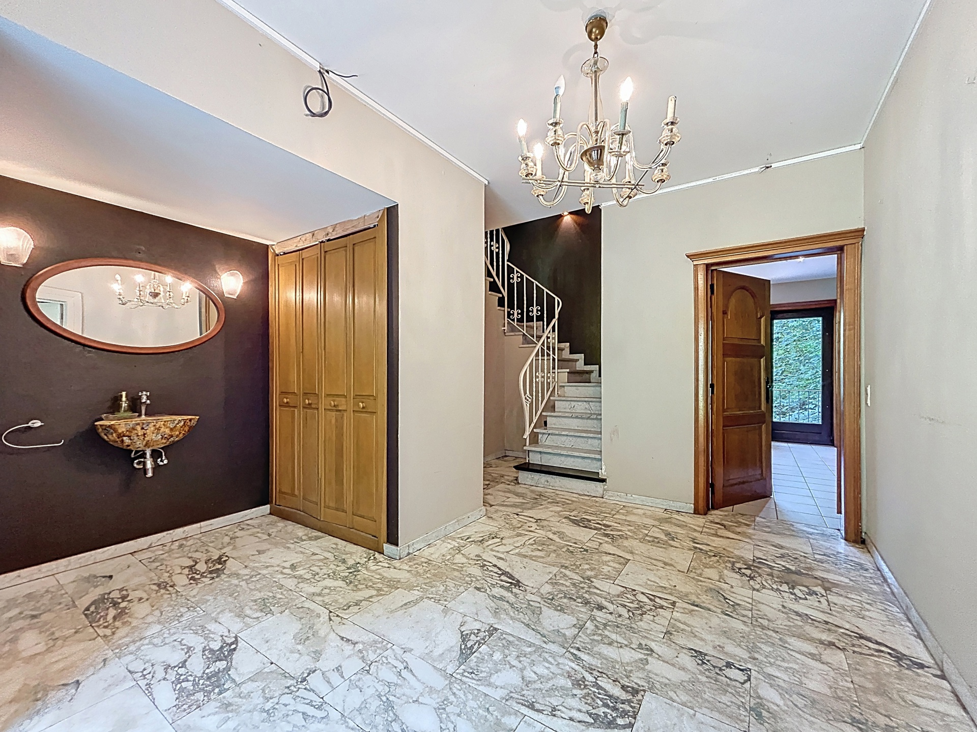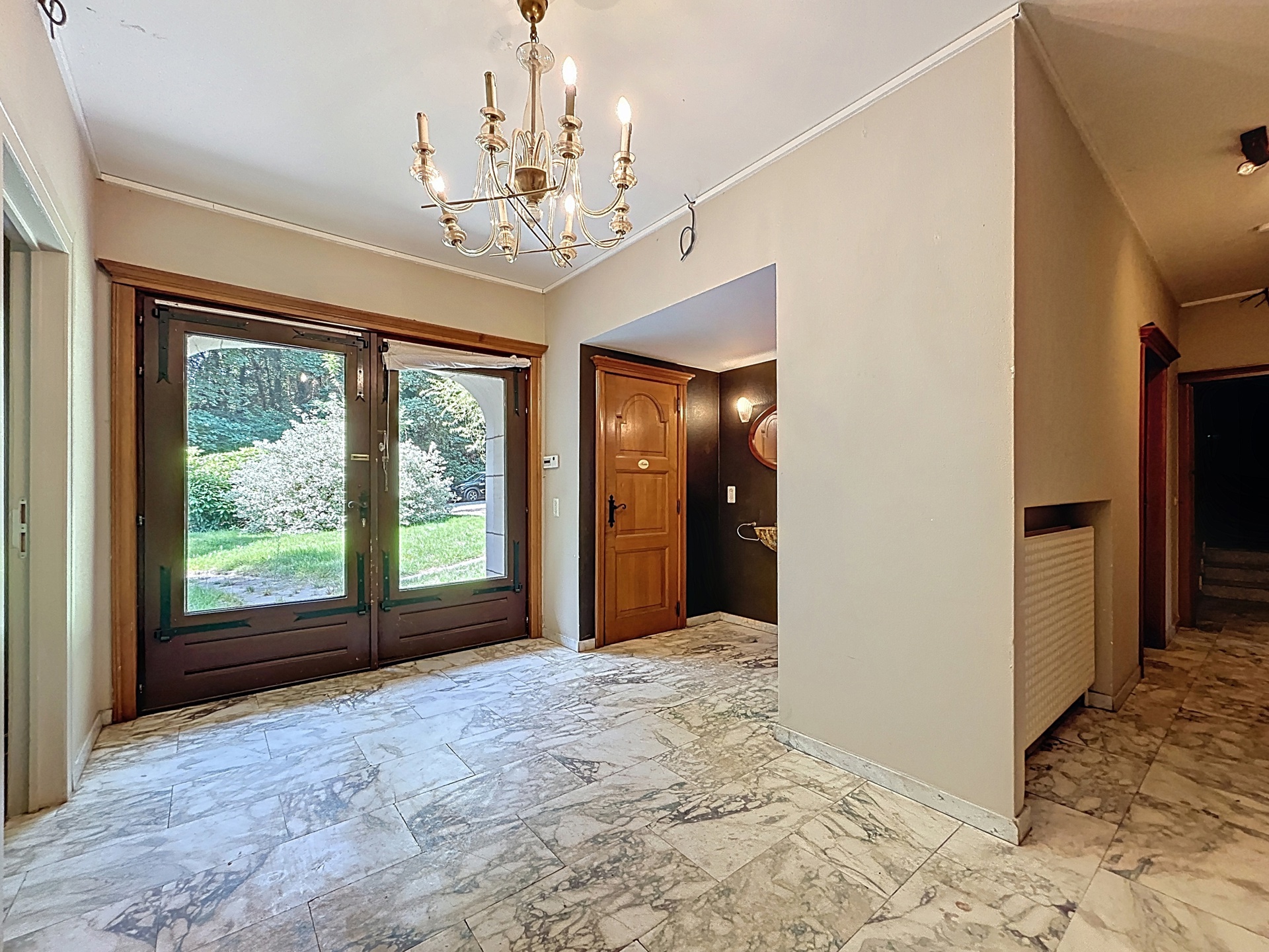 Inkomhal met toilet en vestiaire van 16,5 m². Vloer in tegels.