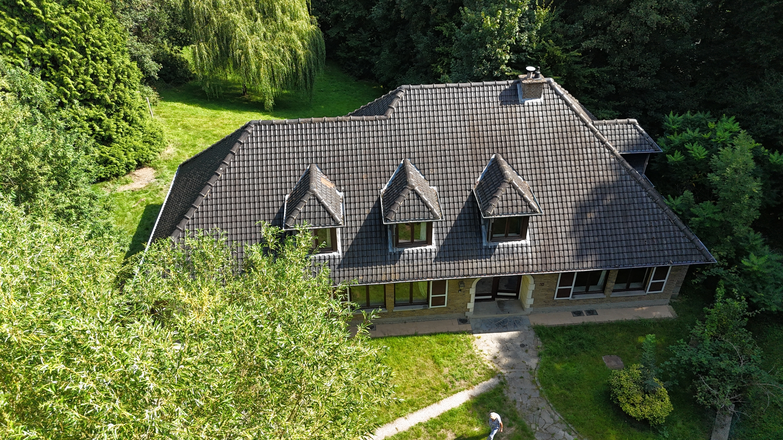 Op de verdieping: 4 mooie slaapkamers, een badkamer en een doucheruimte, 2 garages, parkeerplaatsen; op tuinniveau een grote ruimte geschikt voor een vrij beroep. 110 m² kelder.